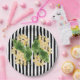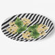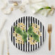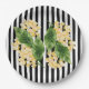 Assiettes En Carton Fleurs jaunes sur rayures noir et blanc