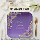 Assiettes En Carton Fleurs mauves violettes et Mariage blanc Carré 9 p