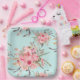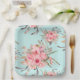 Assiettes En Carton Fleurs rose pâle sur bleu clair