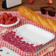 Assiettes En Carton Fleurs rouges marguerites sur arrière - plan blanc