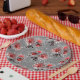 Assiettes En Carton Fleurs rouges sur gris