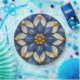 Un magnifique motif en céramique inspiré des motifs azulejos traditionnels, avec des motifs floraux bleus et blancs complexes accentués de détails jaunes vibrants. Cette oeuvre élégante et intemporelle capte l'essence de l'artisanat méditerranéen et ibérique, en faisant une pièce décorative parfaite pour n'importe quel espace.