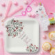 Il présente un design floral d'art populaire de Noël. Ces plaques en papier correspondent à l'invitation de douche du même design.