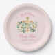 Assiettes En Carton Flore rose avec Baptême de la Croix d'or