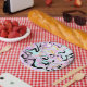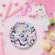 Assiettes En Carton Fluid Art Cotton Bonbon rose, Turquoise, noir et o