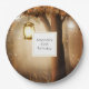 Plaques en papier avec une illustration fantaisiste fantaisiste dans des couleurs brun et jaune riches. Une forêt mystique magique avec un grand arbre tenant une lanterne à l'ancienne. Des lumières des fées dansent tout autour. Un design merveilleux et enchanteur.