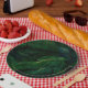 Plaques en papier avec un motif représentant de grands feuilles verts dans une forêt tropicale.