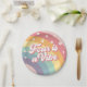Ajoutez une touche de finesse à la décoration de votre petit anniversaire avec ces plaques de papier d'anniversaire à thème les années 70 arc-en-ciel.