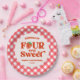 C'est une plaque de papier de fête de 4e anniversaire Four Ever Sweet Strawberry Fruit!