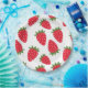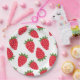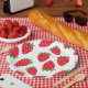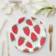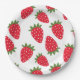 Fraises rouges vives aux plateaux de papier à motifs verts.
