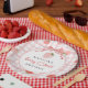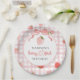 Assiettes En Carton Fraise rose En vichy 1er anniversaire