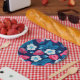 Assiettes En Carton Fraises roses sur bleu