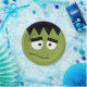 Un Halloween drôle Frankenstein font face d'une plaque à papier. Il y a des points sur l'oeil gauche et la bouche est également piquée. Les yeux sont drôles et croisés observés.