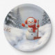 Assiettes En Carton Friendly Snowman with a Red Shovel