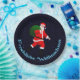 Crois-tu en Père Noël ? Image d'un Père Noël rayé, portant un sac vert de cadeaux ; superposée sur un arrière - plan étoilé. Texte "Froehliche Weihnachten" apparaît en bleu et blanc brillant.