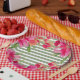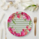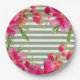 Assiettes En Carton Fuchsia Floral Green Stripes Graduation Party