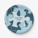 The Fun Jigsaw Puzzle Custom Birthday Party Motto Paper Plates features a partial close-up of jigsaw puzzle pieces. The text reflects the party motto: "Every Piece Counts". Ad your motto or name. If the text is unwanted leave the placeholder empty. All elements are customizable by color.