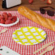Assiettes En Carton Funky Bright Jaune et blanc Motif Rhombus