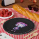 Plaques en papier avec une jolie illustration. Monstre Frankenstein aux cheveux roses et violets et costume et cravate en dapper.