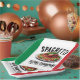 Mangiamo! Make that Italian family reunion memorable and a riot with these spaghetti eating champions paper plates, which feature the colors of the Italian flag and an image of a delicious heaping plate of my favorite Italian pasta, topped with tomato sauce, meatballs, and basil leaves! Personalize with surname or event name!