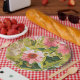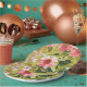 Ces assiettes font un grand accent pour une fête, une réunion, un mariage ou autre événement. Des serviettes de coordination sont disponibles. Les tons roses font apparaître ces convives sur les feuilles dans des tons verts variés, frais du jardin. Ce design est l'art original de Phyllis Dobbs et est disponible sur plusieurs produits de coordination.