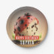 Plaques en papier d'anniversaire avec un gâteau d'anniversaire sur le thème de la coccinelle. Et "Joyeux Anniversaire", police de caractères gras casquette. Customisez-le en ajoutant votre ou vos nom(s).