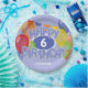 Ces plaques de papier amusantes et colorées de fête d'anniversaire comportent le message "Joyeux Anniversaire", épelé dans des biscuits réalistes bleus dépoli, disposés de façon fantaisie, entourés de ballons multicolores et de drapeaux de bottes - l'âge et le nom de l'enfant peuvent être personnalisés - par katz_d_zynes