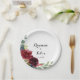 Cette assiette en papier pour gâteau de mariage calligraphié en bourgogne rustique d'automne est parfaite pour une réception de mariage moderne. Le design présente des fleurs peintes à la main en bourgogne, rouge, marine, bleu et blush radieuses et gracieuses, inspirant la beauté naturelle.