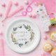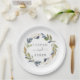Ces assiettes en papier-cake mariage de couleur verte d'automne sont parfaites pour un mariage de automne. Le design rustique moderne présente des feuilles bleu marine, vert sauge et or avec des branches de fleurs bleu foncé. Ces assiettes en papier jetables sont parfaites pour le gâteau ou la table de desserts. Personnalisez-les avec les noms de la mariée et du marié.