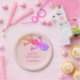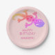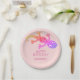 Plaques de papier d'anniversaire Gecko pour enfants. Les assiettes ont un gecko mignon. Le gecko arc-en-ciel est particulièrement bon pour les filles. L'arrière - plan est rose. Plaques papier personnalisables avec un texte d'anniversaire heureux et le nom d'un enfant. Personnalisez facilement les assiettes. Le texte est de couleur rose. Idéal pour une fête d'anniversaire de garçon ou de fille.