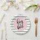 Une fête d'halloween pas éffrayante ! Pastel rose Hey Boo Ghost Halloween Plaques de fête d'anniversaire avec arrière - plan rayé noir et blanc.