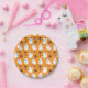Cute Orange Ghost motif Plaques de papier pour les fêtes d'anniversaire d'Halloween. Le fond est Orange avec un motif qui combine des fantômes, des sorcières casquettes, des lollypops et des figurines de flocon de neige.