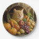 Assiettes En Carton Ginger Cat In a Thanksgiving Cornucopia
