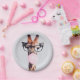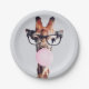 Assiettes En Carton Girafe Portant des lunettes soufflant rose bulle g