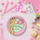 Cette assiette de fête est ornée d'oeuvres d'art de gomme à bulles géantes. Idéal pour les anniversaires, les baby showers ou autres idées de fêtes liées à la jungle. Modifiez simplement le texte personnalisé.