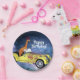 Girafe dans l'espace - drôle d'illustration d'une girafe dans une voiture sport flottant dans l'espace. Joyeux anniversaire personnalisé garçon's anniversaire Plaques de papier
