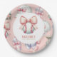 Assiettes En Carton Girl Birthday Personalized Pink Baseball Bow