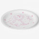 A cute pink drawing of a simple dinosaur, perfect for a birthday party theme for girl. A clean outline design that looks sweet and fun on a white 9-inch round paper plate. Co-creation with generative AI.