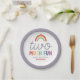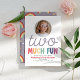 Celebrate turning two with this adorable “Two Much Fun” birthday paper plate! Featuring a modern retro rainbow, colorful font and space to add your child’s name on the front, plus a coordinating purple outline. Perfect for a 2nd birthday party.