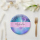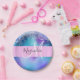 La parties scintillant de sirène holographique en verre scintille le nom monogramme et les plaques de papier initiales. Votre nom personnalisé et votre monogramme sont écrits dans un élégant script écrit à la main avec un arrière - plan rose clair. Vous pouvez modifier la couleur du texte, le style et la taille de police à l'aide de l'option personnaliser.