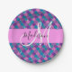 Fille et glam violet, lilas, aqua et bleu parties scintillant sirène scintillent le nom monogramme et la plaque papier initiale. Votre nom personnalisé et votre monogramme sont écrits dans un élégant script écrit à la main avec un arrière - plan rose.