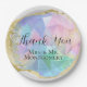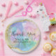 Ces assiettes personnalisées de fête ont l'image d'une belle pierre à gemme opale avec une fausse bordure et des accents de feuille d'or. L'arrière - plan est un motif de parties scintillant blanc. Les couleurs pastel semblent irisées. La pierre d'opale est la pierre de naissance d'octobre et est l'une des pierres semi-précieuses naturelles les plus belles.