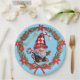 Bring festive charm to your holiday table with this cheerful paper plate featuring a cute gnome in a red checkered hat holding a candy cane. Surrounded by a wreath of pine branches and poinsettias, and accented with a golden "Bon Appétit!" script, this light blue plate adds warmth and whimsy to Christmas dinners, winter parties, and seasonal gatherings. Perfect for family celebrations and cozy meals.