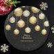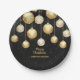 Elegant gold and white Christmas tree ornaments on a black background, these personalized paper plates are available in 2 sizes. Perfect for a holiday dinner party, a corporate Christmas party, holiday wedding event party and more. MATCHING items in our collection.