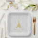 Assiettes En Carton Gold Eiffel Tower Mariage damassé