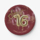 Assiettes En Carton Gold Foil Sweet 16 Ballons d'anniversaire Bourgogn