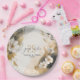 This unique paper plate is part of a sophisticated twenty-fifth anniversary collection. The design features soft watercolor tones of beige and charcoal, highlighted with shimmering gold accents and delicate floral line art. Bold typography balances beautifully with graceful script details, creating a sophisticated and romantic look. Perfect for celebrating '25 years of love' in timeless style. Search ID1169 to see other products in this design set.