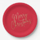 Merry Christmas text in chic fancy lettering in gold faux foil is featured on red holiday paper plates in two sizes. MATCHING items in our store.