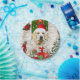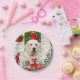 Golden Retriever Chien Noël assis à l'extérieur décoré maison avec la couronne de Noël, sapin de Noël est une idée cadeau de Noël parfait pour les amoureux de les chiens.