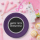 Un arrière - plan violet clair, avec un cercle noir et gris au centre pour les voeux d'anniversaire, fait une plaque en papier classe pour aller avec l'ensemble d'anniversaire Dark Goth avec Roses violets.